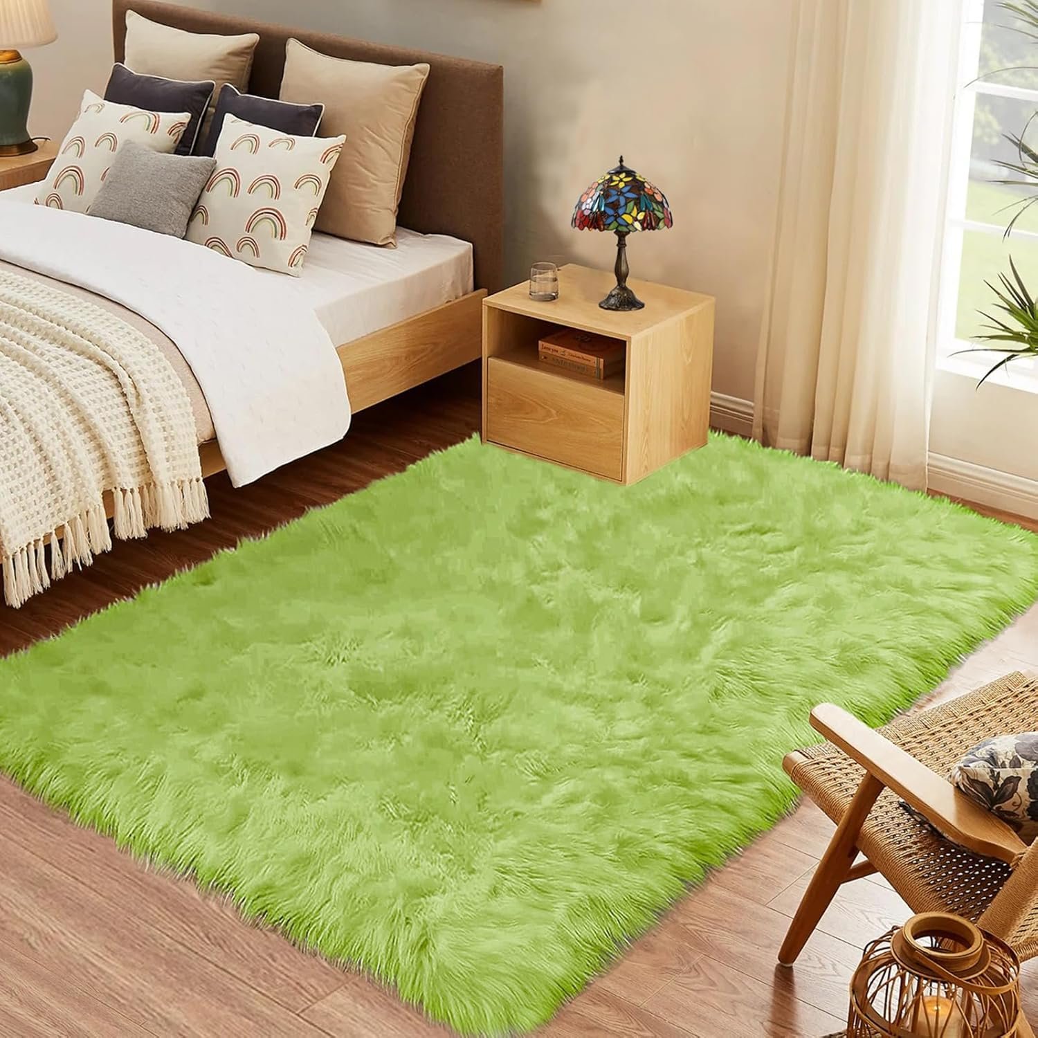 Goolela Area Green Fluffy Rug Washable Faux Fur for Bedroom Living