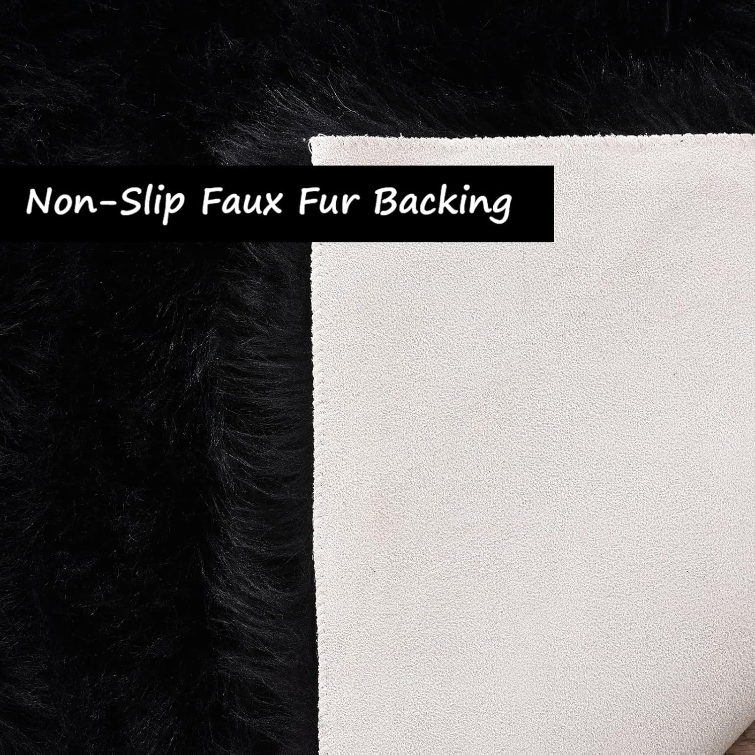 Goolela Black Faux Sheepskin Fur Rug for Bedroom and Living Room