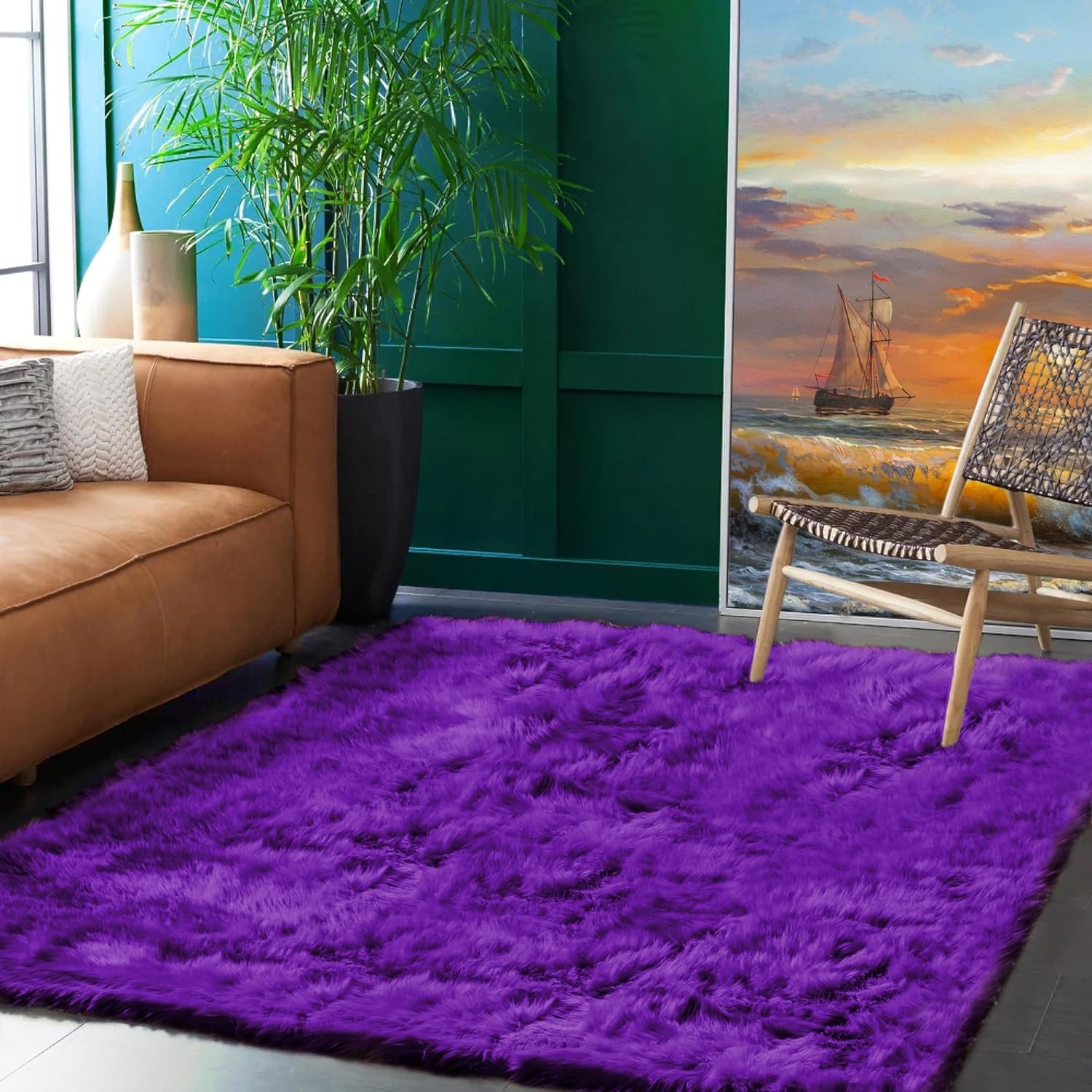 Goolela Faux Fur Rug Area Rug Washable Rugs for Living Room Purple Rugs