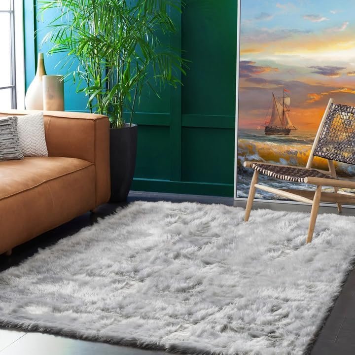 Goolela Washable Area Rug Grey Faux Fur Fuzzy Rug